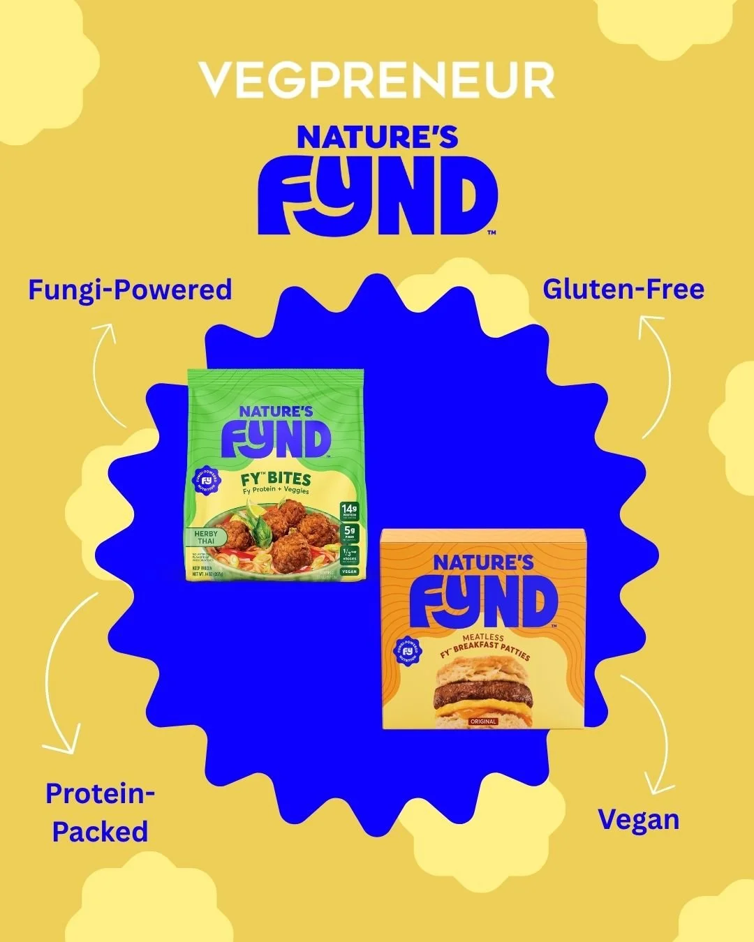 Today, Nature’s Fynd produces a growing range of vegan products made from Fy™, including meatless breakfast patties, veggie + protein bites, and dairy-free alternatives like cream cheese and yogurt. Their approach uses a fraction of the land, water, and energy required by traditional agriculture, offering a scalable, planet-friendly protein solution for the future.